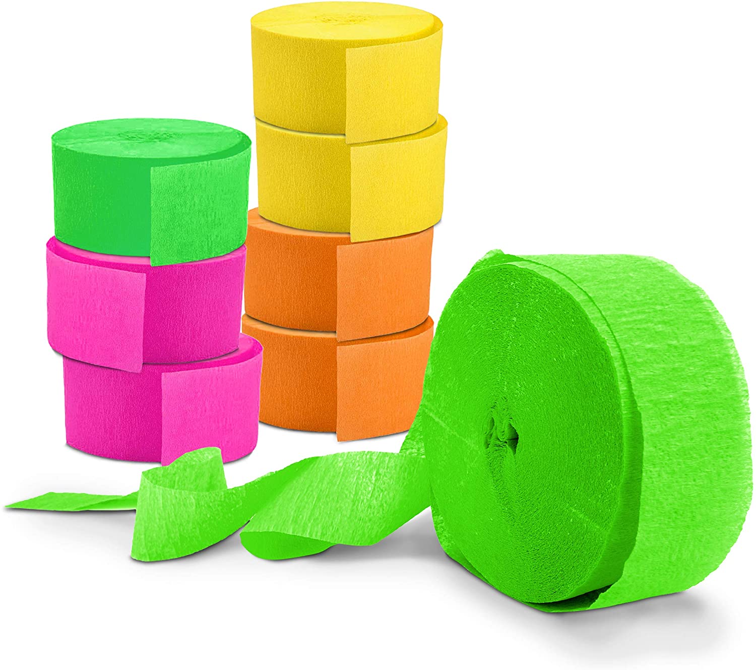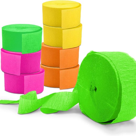 Glow King Streamers – Blacklight Party Streamer Decorations – Neon Crepe Paper – Black Light Party Supplies & Accessories – UV Reactive, Fluorescent – 8 Pack of 100ft Rolls!