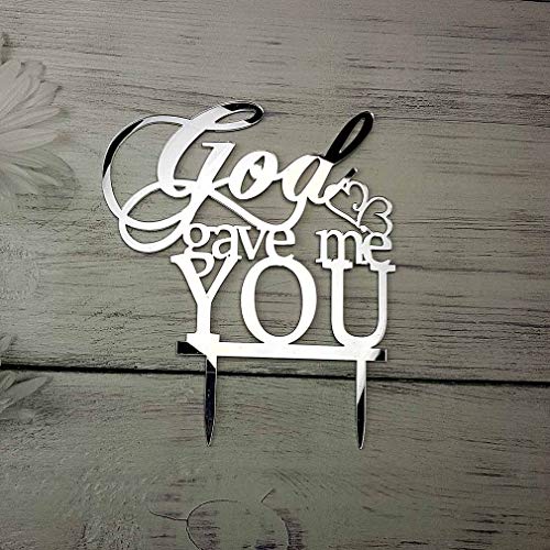 God Gave Me You Wedding Cake Topper for Wedding/Engagement/Marriage Party Decorations (Mirror Silvery Acrylic)