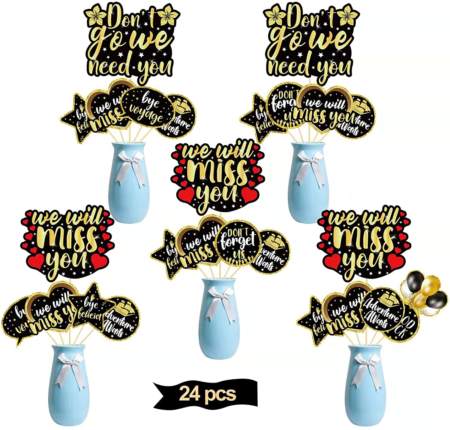 Going Away Party Decorations We Will Miss You Table Centerpiece Sticks, 24pcs Table Topper Supplies for Farewell Retirement Goodbye Bye Felicia Adv…