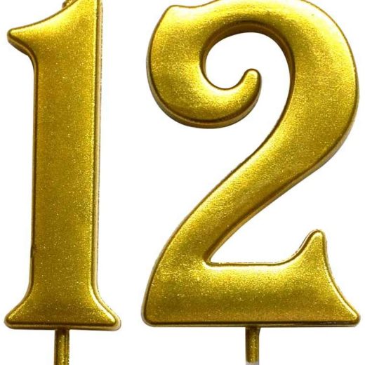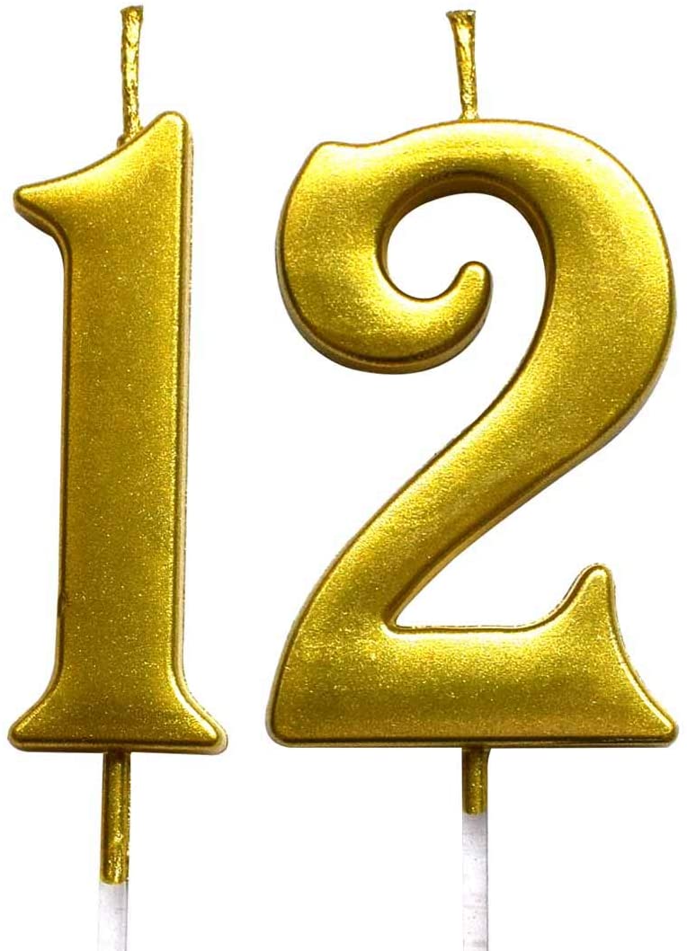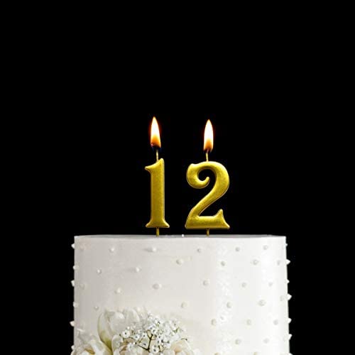 Gold 12th Birthday Numeral Candle, Number 12 Cake Topper Candles Party Decoration for Girl Or Boy