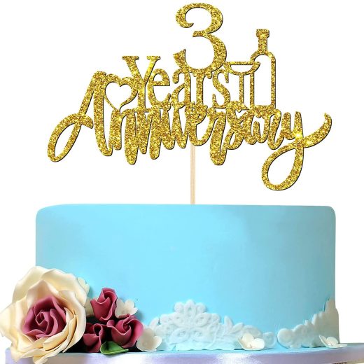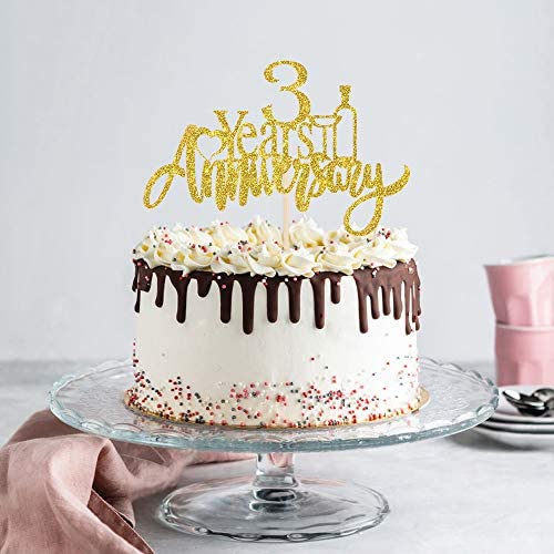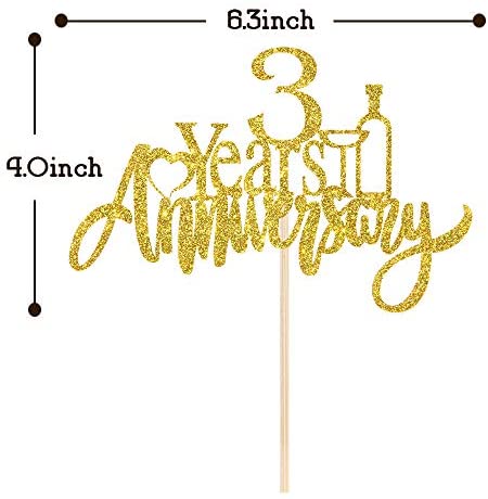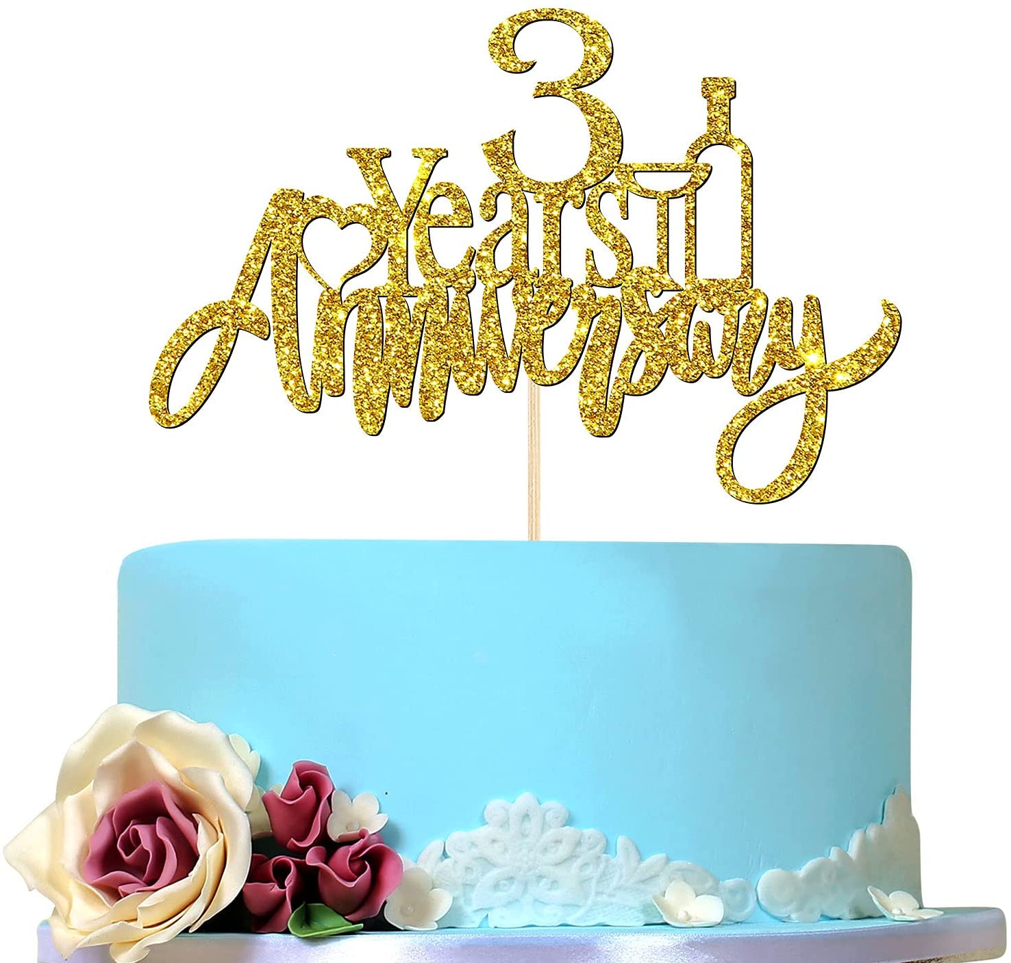 Gold 3 Years Anniversary Cake Topper, 3rd Wedding Anniversary Party Decorations, 3rd Anniversary Cake Decoration