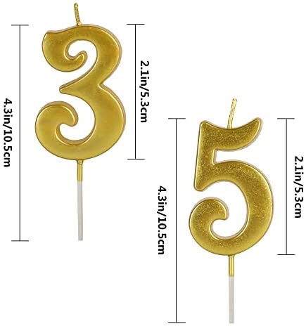 Gold 35th & 53th Number Birthday Candles for Cake Topper, Number 35 53 Glitter Premium Candle Party Anniversary Celebration Decoration for Kids Women or Men