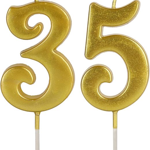 Be the first to review “Gold 35th & 53th Number Birthday Candles for Cake Topper, Number 35 53 Glitter Premium Candle Party Anniversary Celebration Decoration for Kids Women or Men” Cancel reply