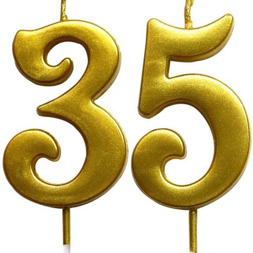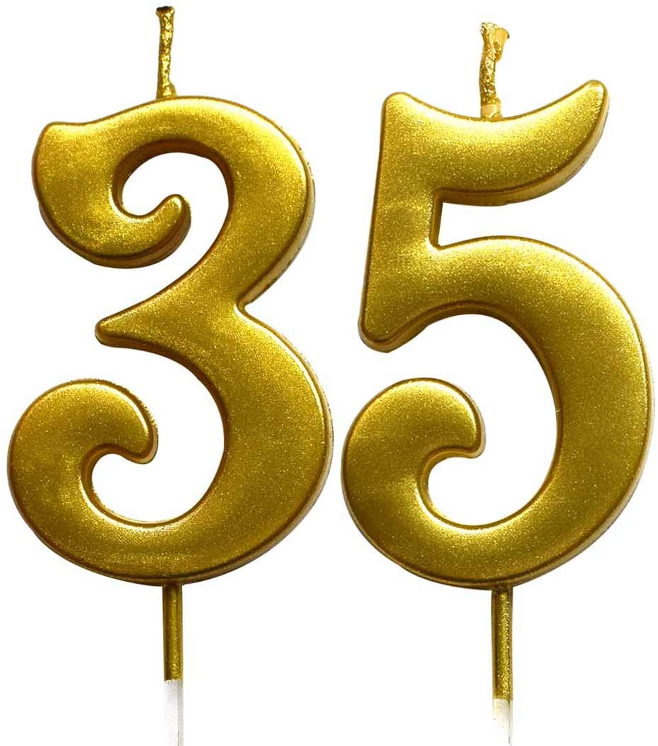 Gold 35th Birthday Numeral Candle, Number 35 Cake Topper Candles Party Decoration for Women or Men