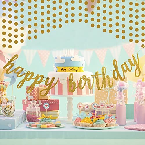 What you will get: 1pcs gold glittery happy birthday banner,1pcs gold glittery circle dots garland,glittery material adds a high-end feel to the party,perfect for all birthday party decoration,worth buying it!! Gold glittery happy birthday banner: high quality eco-friendly paper,each letter length approx is 6.7(17cm).gold glitter paper circle dot banners diameter: 2inch, in total 25pcs circle dots. Happy birthday banner gold: unque design, perfect for birthday party decorations,men birthday party,or all birthday party decoration supplies.or wherever you want to decorate on your birthday.high quality made. Perfect for hunging from branches and ceilings, or open against a wall, hanging up dessert tables, backdrops, and the overall party space,the adornment of the integral collocation of color is also very perfect place you want to decorate. Design: high quality material,meet your quality needs,our product design will highlight your gathering,and your satisfaction is our pleasure.