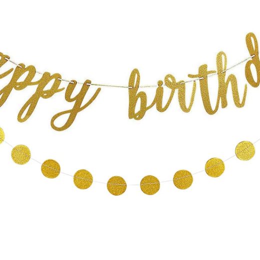 What you will get: 1pcs gold glittery happy birthday banner,1pcs gold glittery circle dots garland,glittery material adds a high-end feel to the pa…