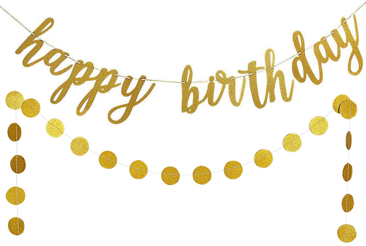 Gold Birthday Decorations, Gold Glitter Happy Birthday Banner and Gold Glitter Circle Dots Garland for Birthday Party Decorations
