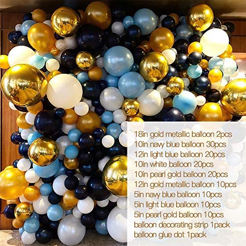 Gold Blue Balloon Garland Kit & Balloon Arch Kit Party Supplies 134Pcs, DIY White Blue and Gold Balloons for Baby Shower Graduation Birthday Bachelor Party Decoration Backdrop with Accessories 18
