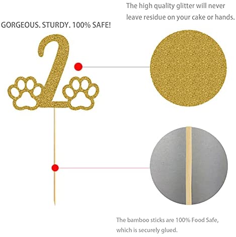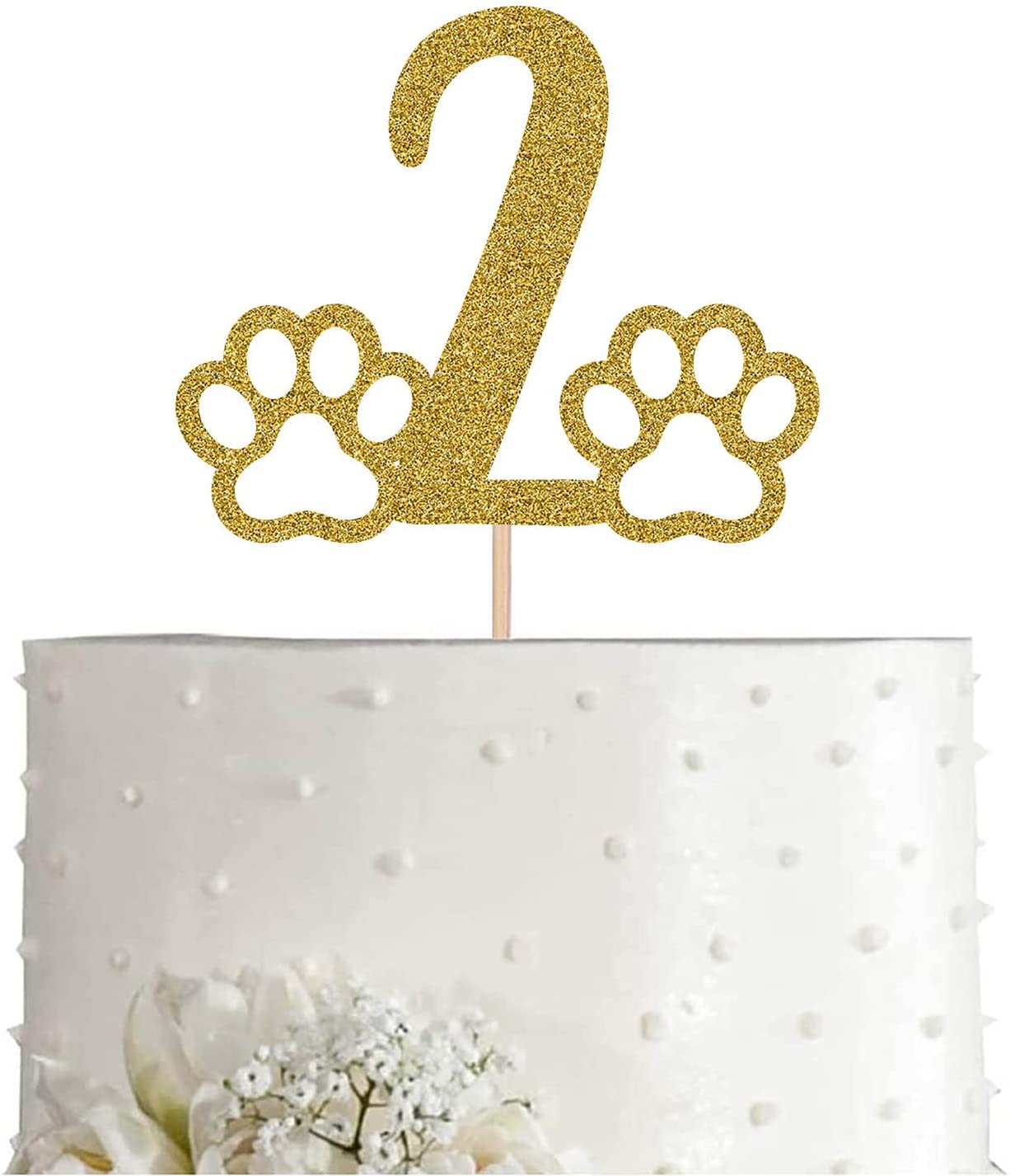 Gold Dog 2 Cake Topper, Gold Glitter Dog Or Cat Lover 2nd Birthday Party Cake Topper Decoration