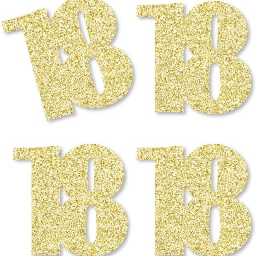 Gold Glitter 18 – No-Mess Real Gold Glitter Cut-Out Numbers – 18th Birthday Party Confetti – Set of 24