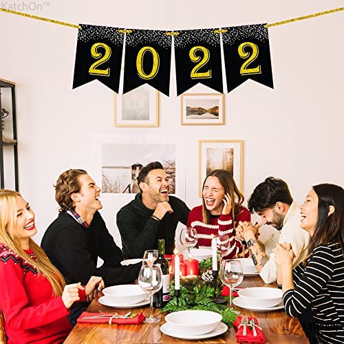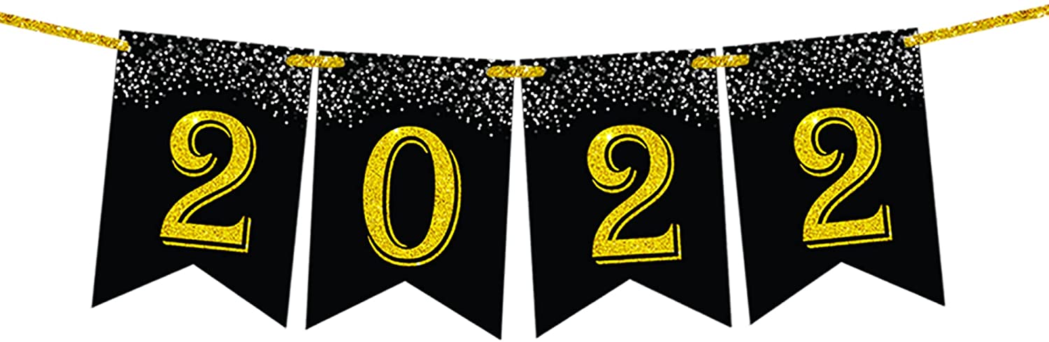 Gold Glitter, 2022 Banner New Year – No DIY | Happy New Year Banner 2022 for New Years Eve Party Supplies 2022 | NYE Banner for Happy New Year Decorations 2022 | New Years Eve Banner | NYE Decorations
