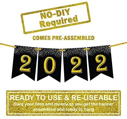 SHIMMERING BEAUTIFUL REAL GOLD GLITTER 2022 BANNER – Want to have a unique party decors for your new year party Decorations Welcome the new year with this shining real gold glitters new years banner is 8 Feet spelled as 2022 which best suits on a black card, made up of very thick and sturdy card stock. Add a luxurious ambiance to your event that lasts long for happy new year decorations 2022 SAVE YOUR TIME WITH THE PRE-ASSEMBLED, READY TO USE BANNER – Convenience, is what you are looking for This luxurious happy new year banner 2022 can help you save your time and effort. Delivered pre-stung and preassembled, this party add-on is hassle-free! Plus it is very easy to install. Great as greeting 2022 banner at entrance way or as a complement for new years backdrop for new years eve decorations. BUY WITH CONFIDENCE | 100% SATISFACTION GUARANTEED – We are very confident with the quality, durability & incredibly style of our sturdy 2022 new years decorations 2022 Banner. Upon purchasing, you are covered with 100% money back guarantee, if it doesn’t meet your expectations. But, we assure you that this stunning happy new year sign will bring you smile and joy as you employ this on your best party ever. BUILT TO LAST | STURDY AND DURABLE TO REUSE AGAIN -This happy new year decorations banner featuring printed real glitter gold letter on a sturdy black card that is hand tied onto each end to lock cards perfectly. Durable enough to be hold during the whole day. The happy new year 2022 banner is easy to keep and store. Inexpensive value with a Grade ‘A’ quality party New Years 2022 Banner. A GLAMOUROUS BACKDROP FOR YOUR NEW YEAR PHOTOBOOTH – Show off your decorative skills with this elegant, perfect reusable 2022 Banner for new years eve party supplies 2022. Welcome the newest year with a bang! What are you waiting for Place your order now with this on-trend new years eve banner for NYE Decorations and make the event most memorable!