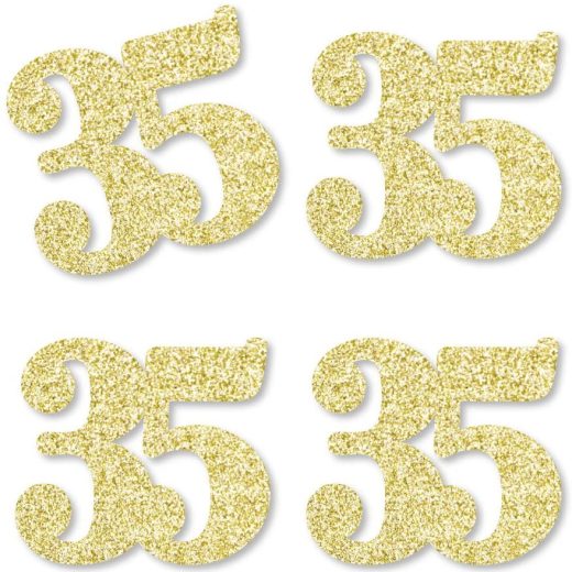 Gold Glitter 35 – No-Mess Real Gold Glitter Cut-Out Numbers – 35th Birthday Party Confetti – Set of 24