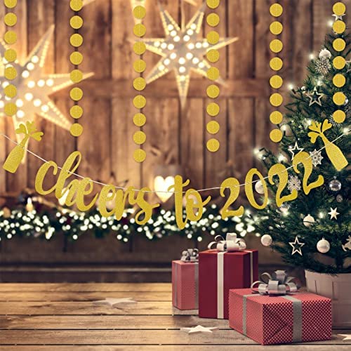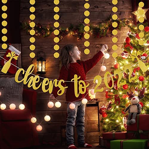 Gold Glitter Cheers to 2022 Banner and Circle Dots Garland, New Years Eve Party Supplies 2022, Happy New Year Decorations 2022,New Years Fireplace Mantle Decorations,Cheers to 2022 New Years Party Decorations Supplies