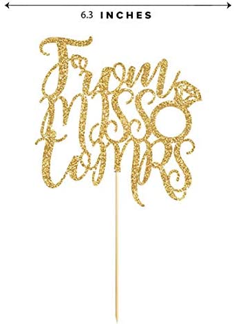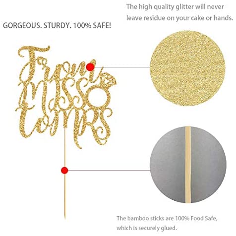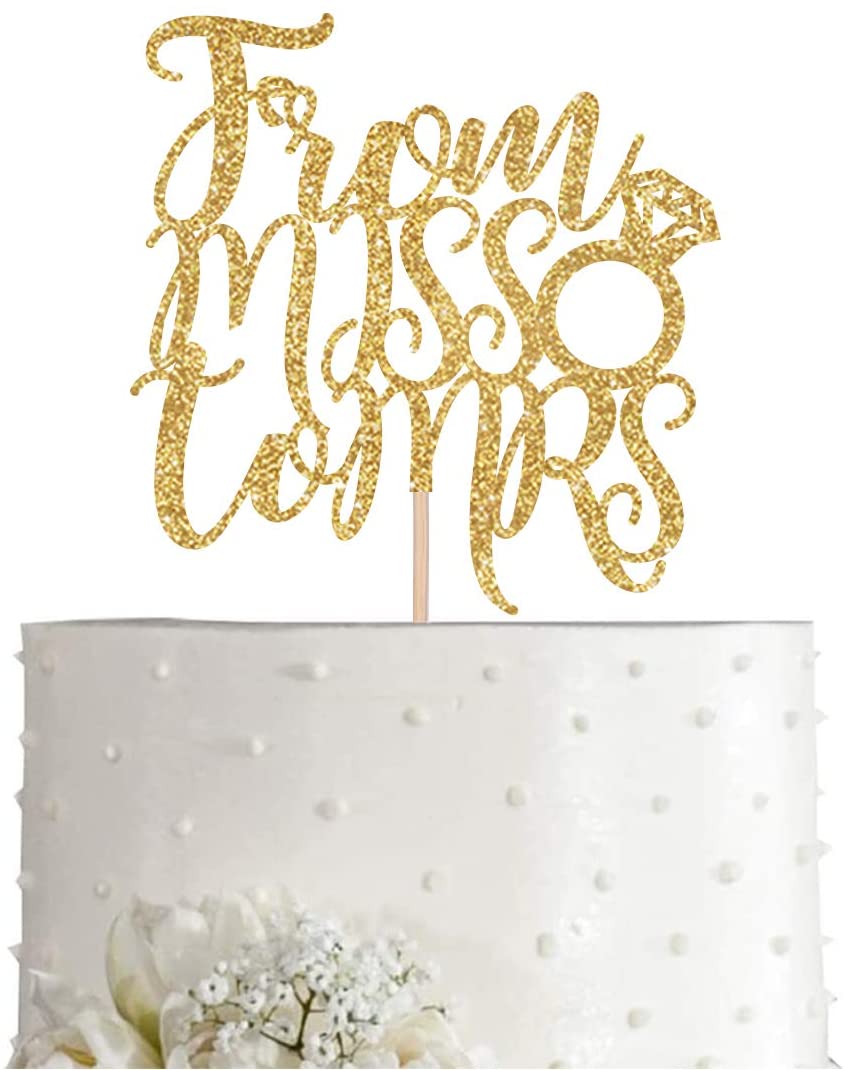 Gold Glitter From Miss To Mrs Cake Topper, Gold Bridal Shower Bachelorette Engagement Wedding Party Decorations, Supplies