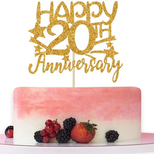 Gold Glitter Happy 20th Anniversary Cake Topper for Wedding Anniversary/Anniversary Party/Happy Birthday Party Decorations