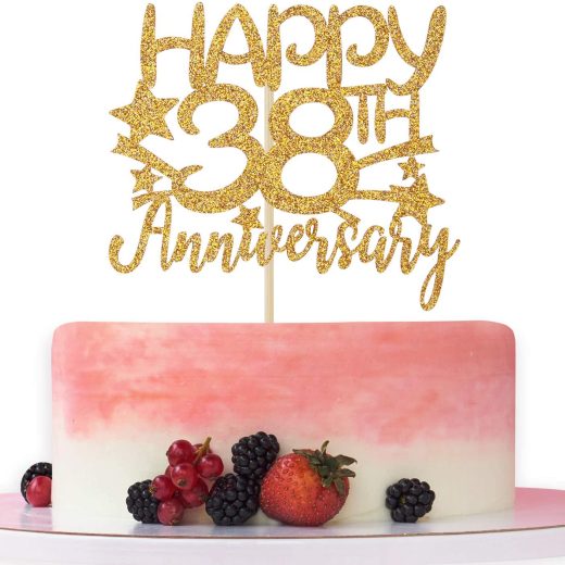 Gold Glitter Happy 38th Anniversary Cake Topper for Wedding Anniversary/Anniversary Party/Happy Birthday Party Decorations