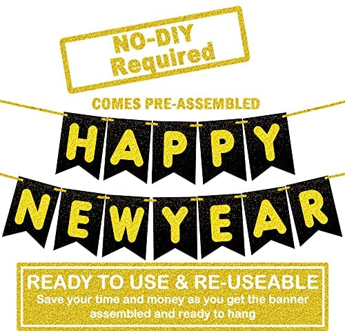 Gold Glitter, Happy New Year Banner – 10 Feet, NO DIY | New Years Eve Party Supplies 2022 For Nye Decorations 2022 | New Years Backdrop For Happy New Year Decorations 2022 | New Years Eve Decorations