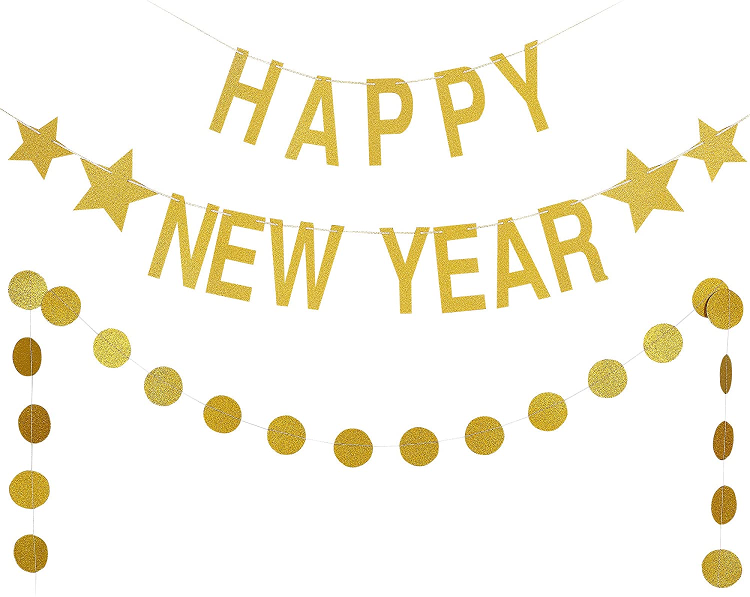 What you will get: 1pcs gold glittery happy new year banner,1pcs gold glittery circle dots garland,perfect for 2022 new years eve party decorations.glittery material adds a high-end feel to the new years party,worth buying it!! 2022 New years party decorations: unique design,perfect for new years eve party decor,new years party decor,christmas party decorations,xmas party supplies,new years mantle home decor,holiday party decor,indoor or outdoor decor,or any new years theme parties. Happy new year banner: high quality eco-friendly glittery paper,letter length approx is 6.3(16cm).gold glittery circle dots garland diameter: 2inch, in total 25pcs circle dots.need to assemble yourself,a little diy. Perfect for hunging from branches and ceilings, or open against a wall, hanging up dessert tables, backdrops, and the overall party space,the adornment of the integral collocation of color is also very perfect place you want to decorate. Design: high quality material,meet your quality needs,our product design will create a cheerful atmosphere for new year 2022 party and highlight your gathering, your satisfaction is our pleasure.