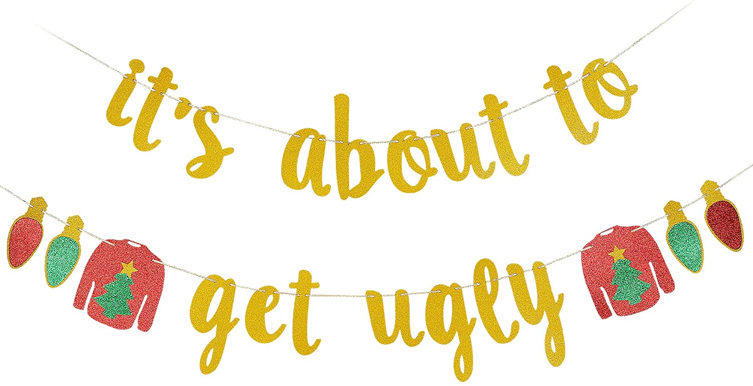 What you will get: 1pcs gold glittery its about to get ugly banner,glittery material adds a high-end feel to the party,perfect for ugly sweater par…