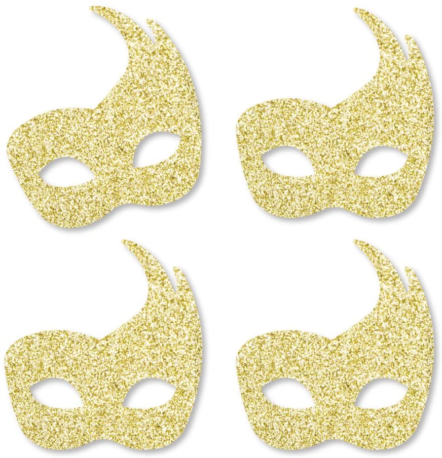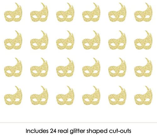 Gold Glitter Masks – No-Mess Real Gold Glitter Cut-Outs – Masquerade Mardi Gras Party Confetti – Set of 24