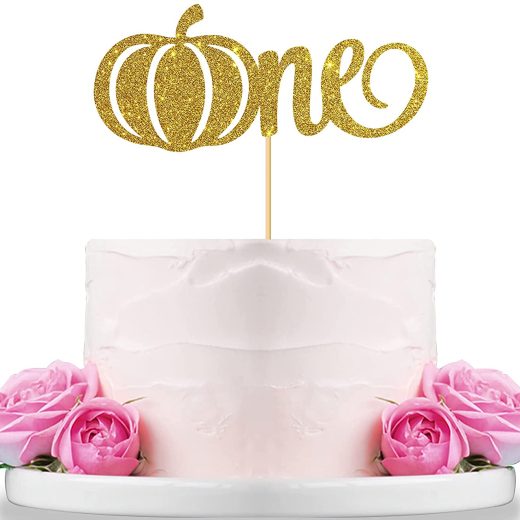 Gold Glitter One Cake Topper for Baby 1st Birthday,One Month,Baby Shower Party Decorations Supplies