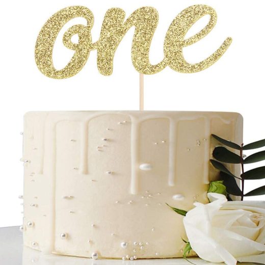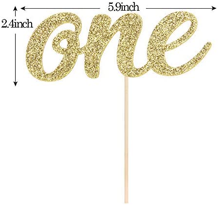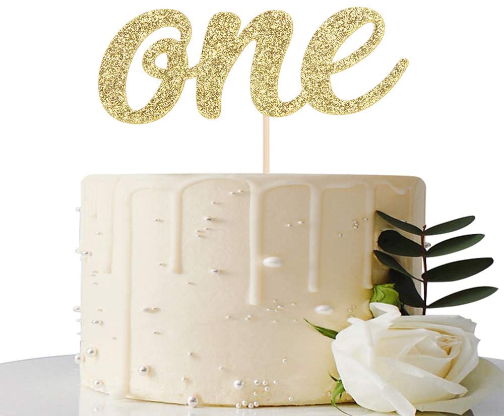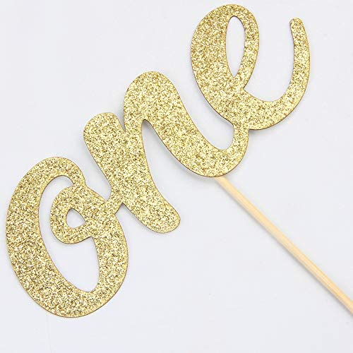 Gold Glitter ONE Cake Topper – for Baby Shower/First Anniversary/First Wedding Anniversary / 1st Birthday Party Decorations
