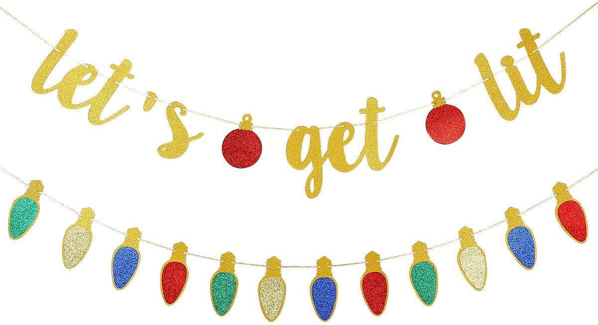 Gold Glittery Lets Get Lit Banner and Glittery Christmas Garland Decor- Christmas Holiday Party Decorations,New Years Eve Party Decor,Grinch Christmas Decorations,Ugly Christmas Sweater Party Decorations,Christmas Mantel Home Decor