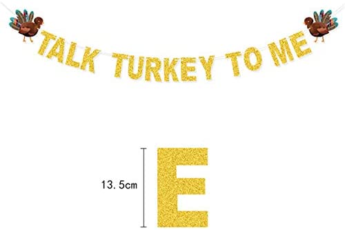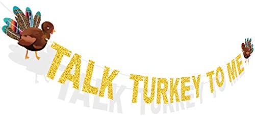 Gold Glittery Talk Turkey To Me Banner for Happy Thanksgiving Holiday Party Decorations