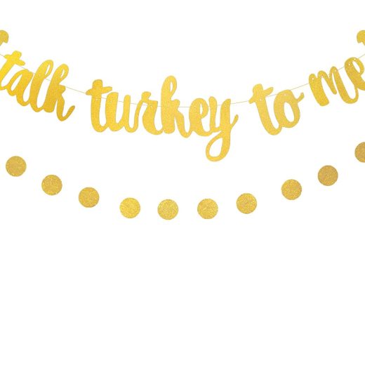 Gold Glittery Talk Turkey to Me Banner, Thanksgiving Party Decorations, Funny Friendsgiving Banner Garland Sign, Autumn Fall Party Supplies Decorations