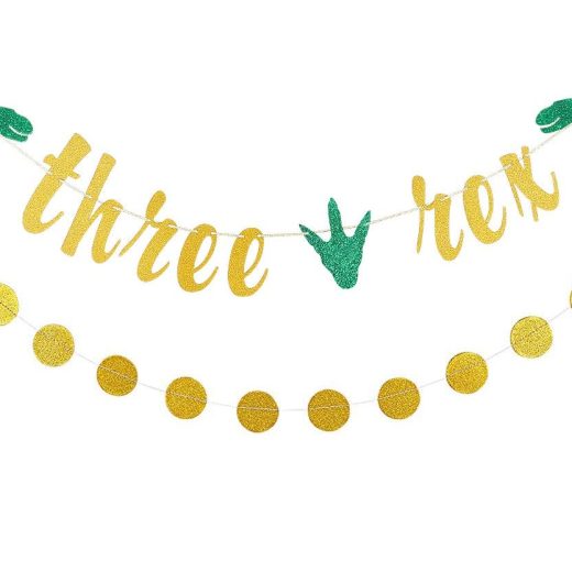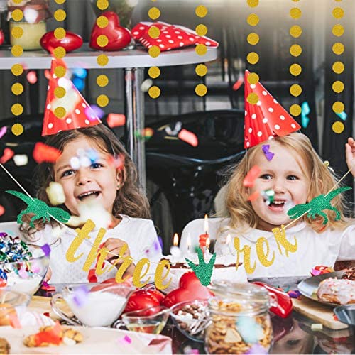 What you will get: 1Pcs Gold Glittery Three Rex Banner,1Pcs Gold Glittery Circle Dots Garland,Perfect for 3rd Birthday Party Decorations,Worth buyi…