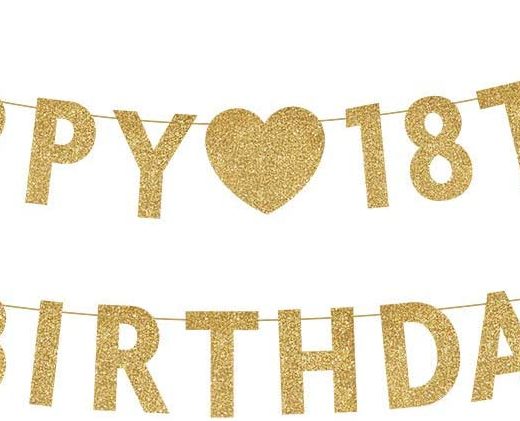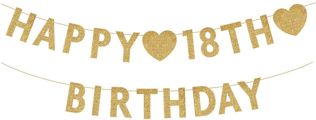 Gold Happy 18th Birthday Banner, Glitter 18 Years Old Boy or Girl Party Decorations, Supplies