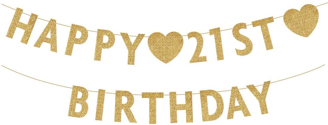 Gold Happy 21st Birthday Banner, Glitter 21 Years Old Boy or Girl Party Decorations, Supplies