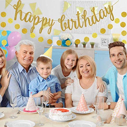 Valuable Package – 3-in-1 gold birthday party decoration set, 1pcs gold glittery happy birthday banner,1pcs gold paper circle dots garland and 3pcs…