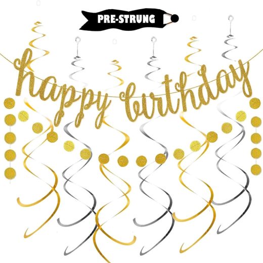 Be the first to review “Gold Happy Birthday Banner Decoration Kit, Gold Glittery Birthday Banner Circle Dots Garland with Gold Silver Hanging Swirls for Birthday Baby Shower Party Decorations Supplies, Pre-Strung” Cancel reply