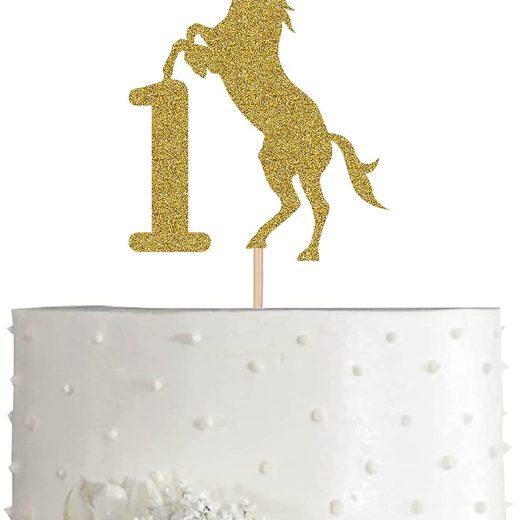 Gold Horse 1 Cake Topper, Gold Glitter Horse Happy 1st Birthday Cake Decoration
