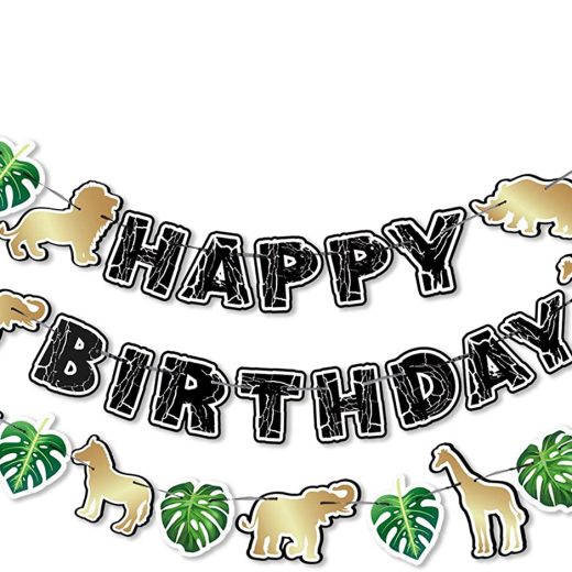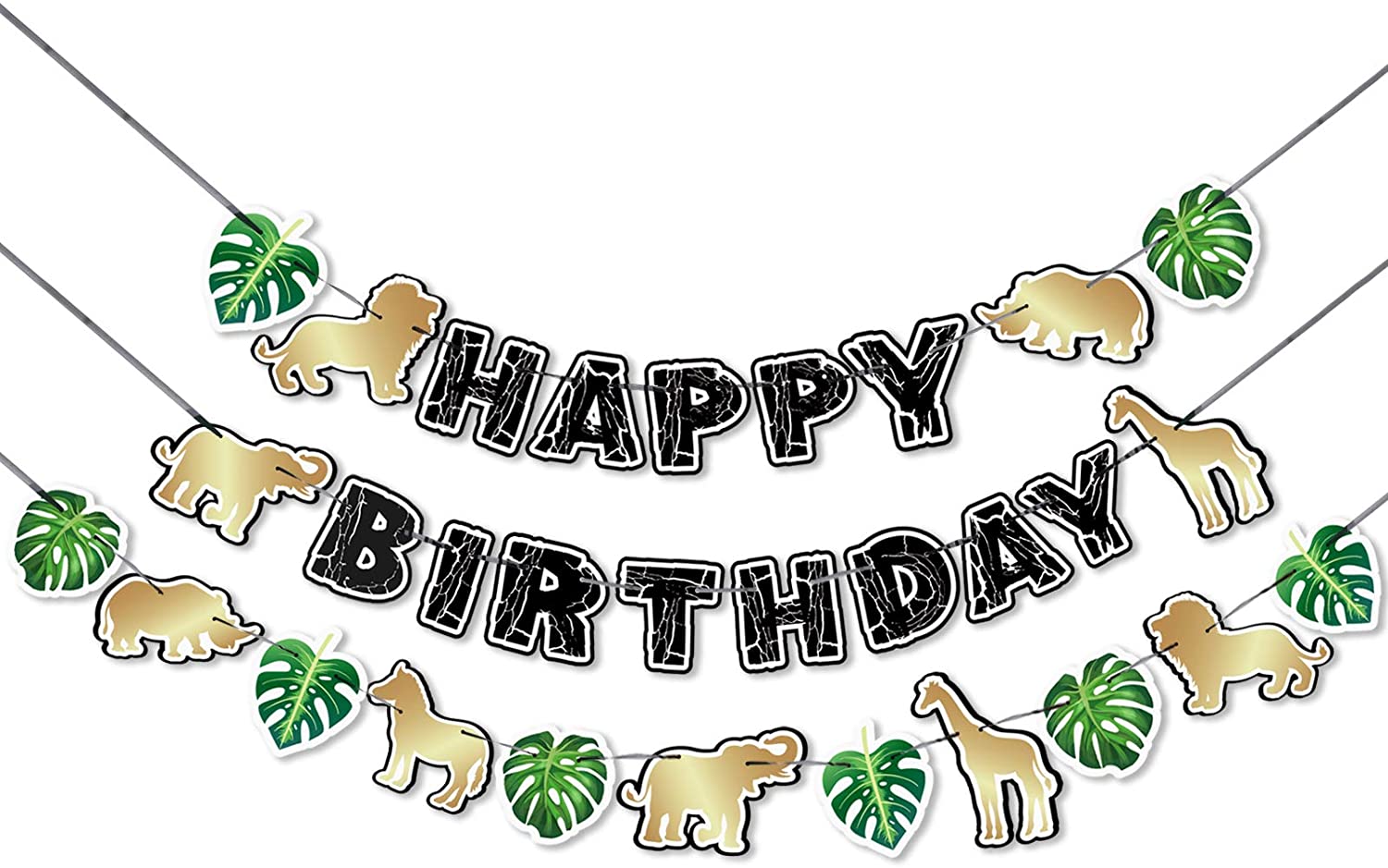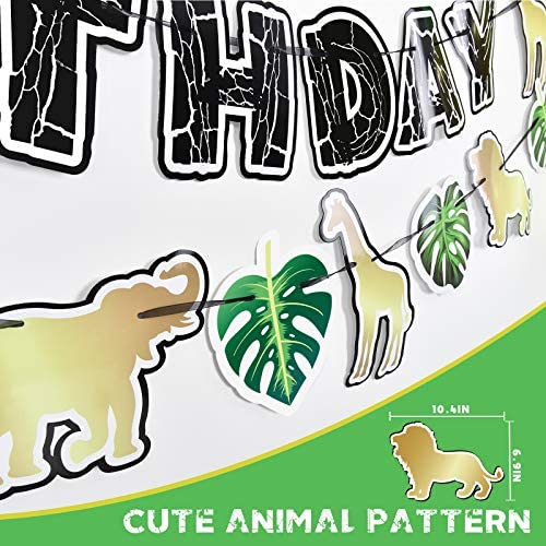 Gold Jungle Safari Happy Birthday Banner – Jungle Animal Theme Birthday Party Decorations for Boys Kids Wild Safari Party Supplies Garland Pre-Strung Wall Hanging Decor