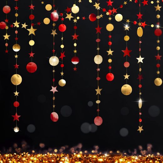 Material Plastic Color Maroon gold star circle garland Occasion Bachelorette Party, Bridal Shower, Baptism, Engagement, Mothers Day, New Year, Wedding, Christmas, Graduation, Baby Shower, Birthday, Valentines Day See more Cheerland