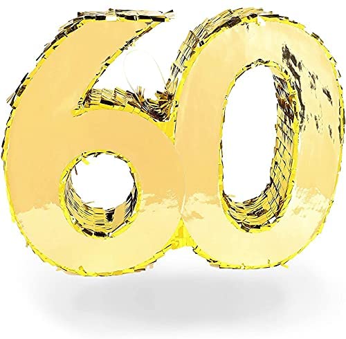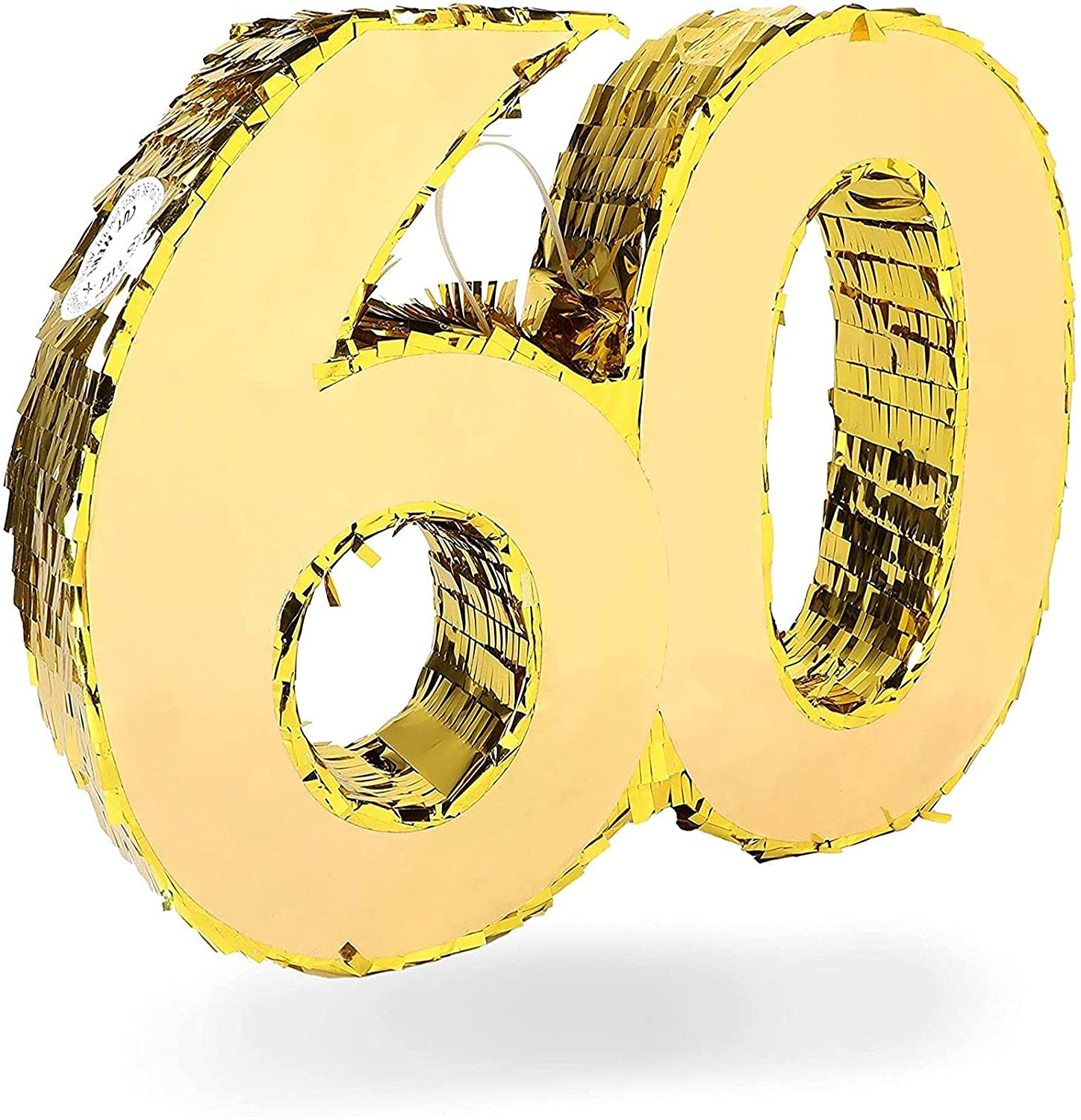 Gold Pinata for 60th Birthday Party, Number 60 (16.5 x 13 x 3 In)