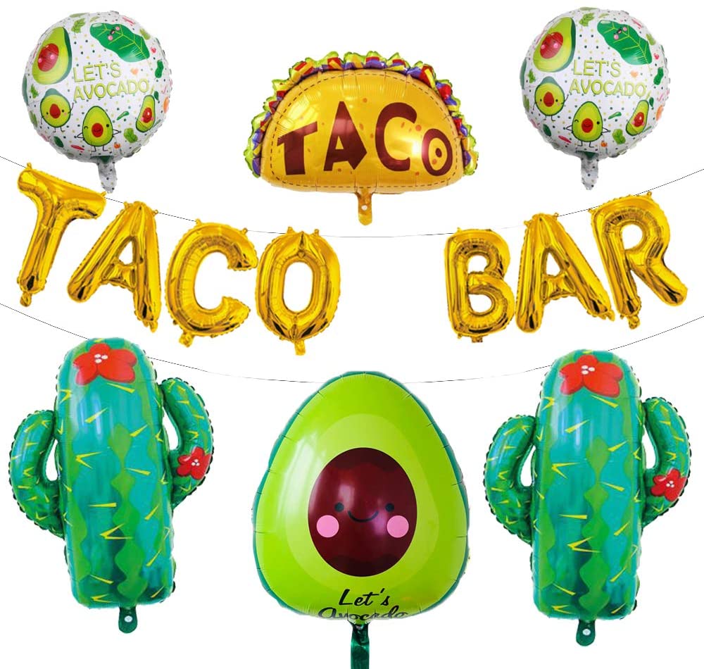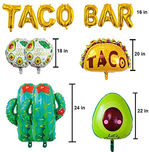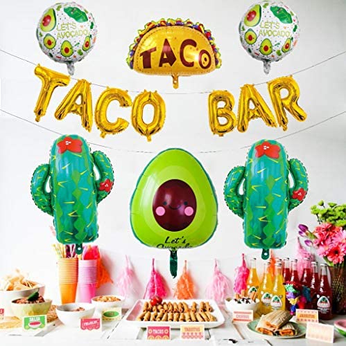 Gold Taco BAR Balloons Banner, Avocado Balloon Cactus Balloon Taco Bar Decorations Sign for Fiesta Mexican Party Brithday Baby Shower Wedding Bridal Shower Engagement Party
