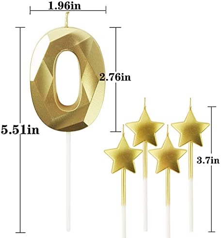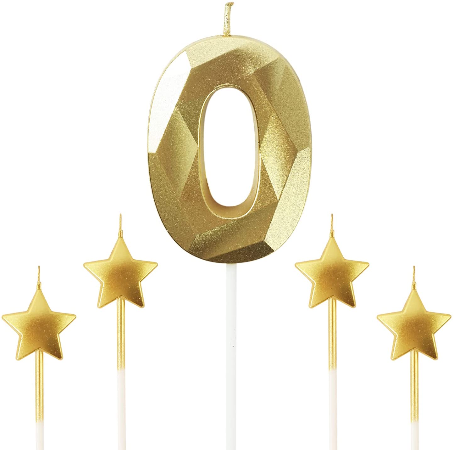 Golden Number 0 Birthday Candles and Star Birthday Candles 2.76 inch Birthday Cake Candles 3D Diamond Shaped Candles are Suitable for Birthday Parties and Anniversary Cake Decorations Candles(Gold 0)
