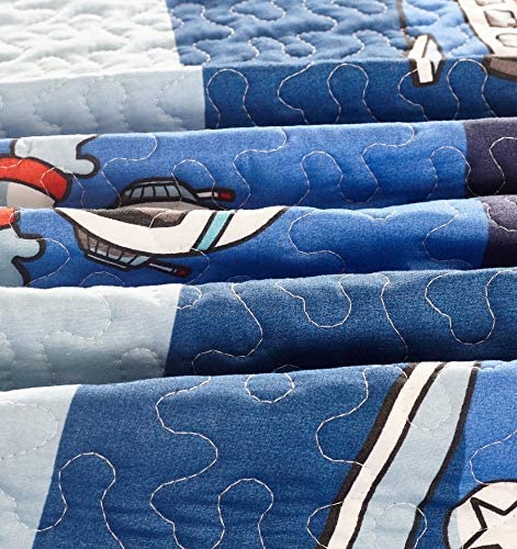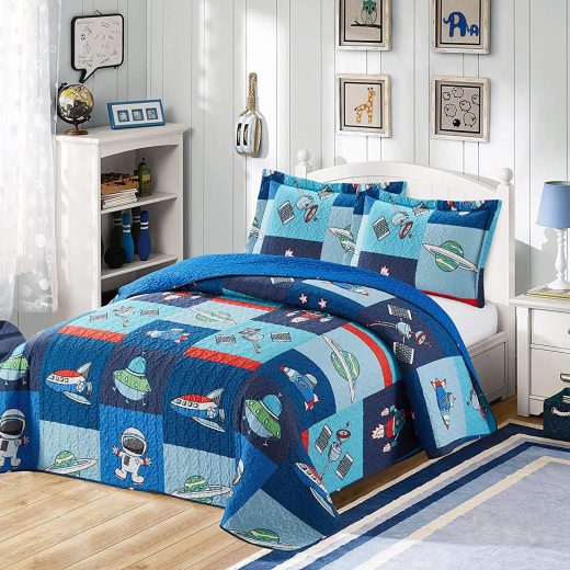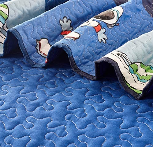 Golden Quality Bedding Twin Size Kids Bedspread Quilts Throw Blanket for Teens Boys Bed Printed Bedding Coverlet Multi Color Navy Blue Astronaut in Space, Spaceship, Satellite Station # 19-04 Twin