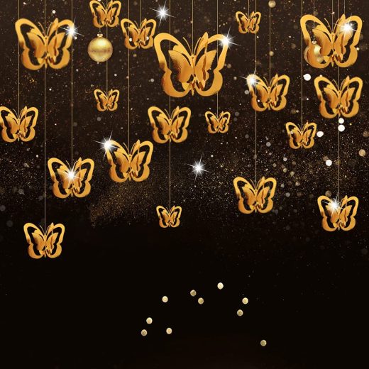 GOMTYEA 3D Gold Paper Butterfly Party Decoration Kit Metallic Hanging Ornaments Decor for Birthday Wedding Baby Shower Nursery Holiday Christmas Clearance Graduation Ramadan 3D Gold Butterfly