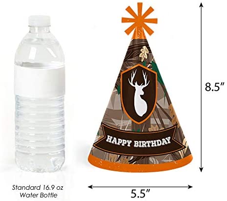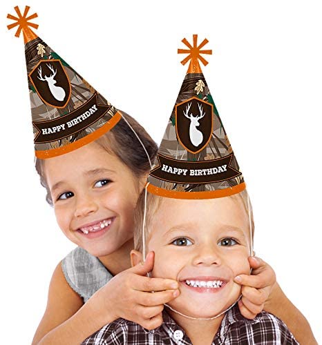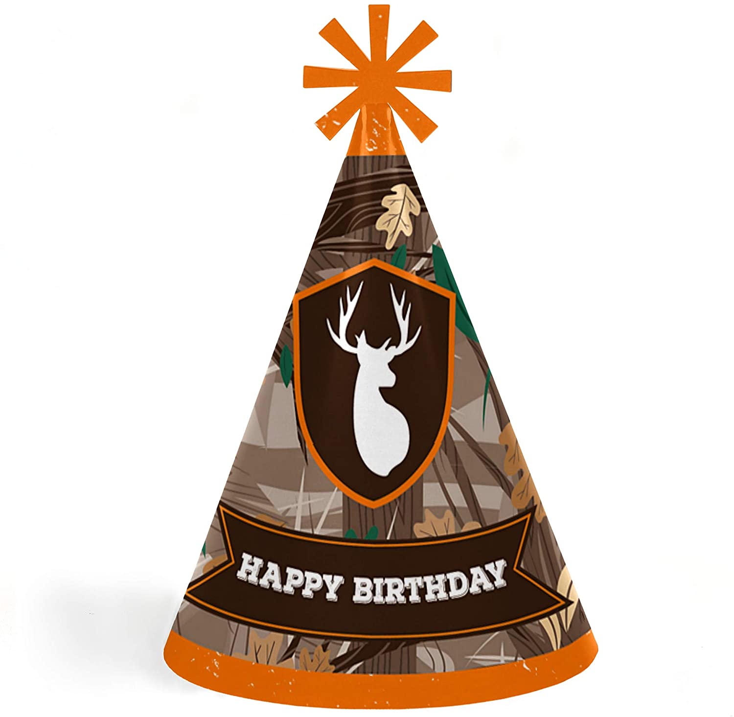 Gone Hunting – Cone Happy Birthday Party Hats for Kids and Adults – Set of 8 (Standard Size)