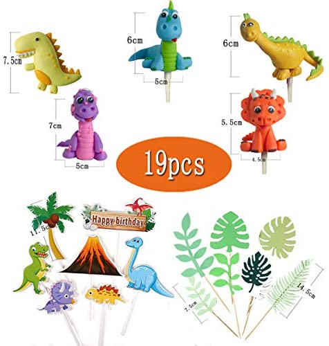 Goo Party 19pcs Dinosaur Theme Party Cake Toppers Kit Dinosaur Jungle Safari Birthday Party Decor Boy Dinosaur Cake Decor Jurassic World Party Decor