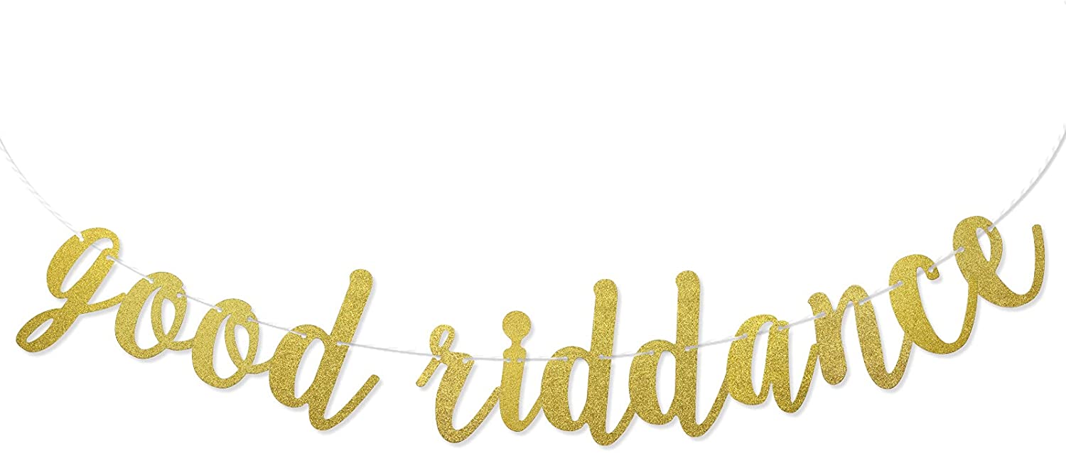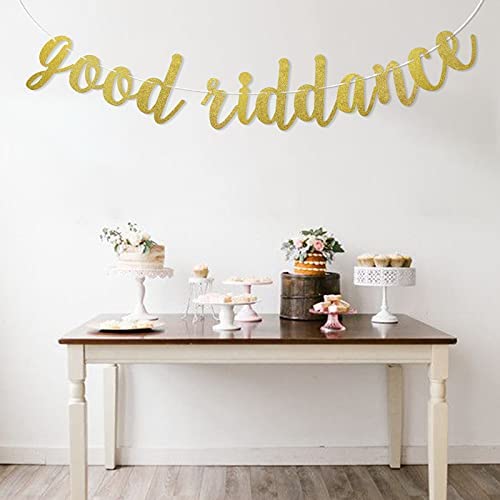 Good Riddance Banner, Retirement Party Decoration, Goodbye, Leaving, Farwell, New Years Eve Bunting Supplies (Gold Glitter)