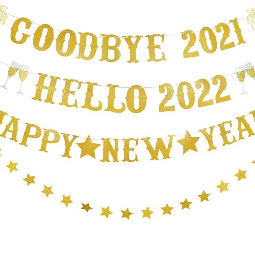 What You Will Get: 1Pcs gold glitter goodbye 2021 hello 2022 happy new year banner,1pcs gold glitter twinkle star garland,perfect for new years eve…