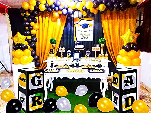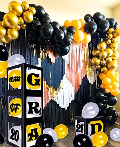 Graduation Decorations Party Supplies, 4 Pieces Congrats Grad Class of 2021 Black Boxes with Balloons Decorating Kit