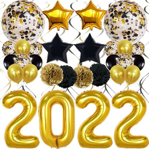 Gold and Black Decorations to You Graduation Party Supplies 2022: 40 Inch Gold 2, 0, 2, 2 Number Balloons, 2 Pcs 18 Inch black gold silver confetti balloons, pack of 18 gold and black latex balloons and confetti balloons plus pack of 4 black gold pom poms , 4 Star Mylar foil Balloons, 18 Pcs Gold Black and Silver hanging Swirl, A must have for a college, senior high school, prom theme graduation party supplies. You can also reuse them for 1st 2nd 20th Birthday, 10th baby or even Class of 2022 Perfect for Party Photo Background Decorations: This magical set contains everything you need for party decoration, so you dont have to spend more from other vendors. Decorate the backdrop with Gold 2022 Balloons and Confetti Balloons to make this an unforgettable moment for your kids, yourself, your family and friends. Easy to hang and detach! Suggested Uses: College Graduation decorations, Senior high school, Kindergarten graduation décor, preschool level up ceremony, Photobooth Backdrop, Photo Background, Retirement, Birthday, Wedding, Bachelor Party, Baby Shower, Anniversary, Engagement, Christmas, Store Opening, Corporate Events, Easter, Halloween, Bridal Shower, Photo Shoots, New Years Eve and any special activity. Decorate the party at home or anywhere and create lasting memories. Non-Toxic & Safe & High Quality: These Latex balloons and 2022 foil balloons can be hung from the ceiling or wall when filled with air, float in the air when filled with helium.Balloons with quality, never easy burst. Please Buy with Confidence: You will get a full refund guarantee any time, please feel free to contact us if you have any questions, your 100% satisfaction is our pursuit