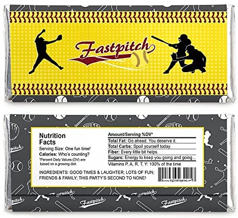 Grand Slam – Fastpitch Softball – Candy Bar Wrapper Birthday Party or Baby Shower Favors – Set of 24